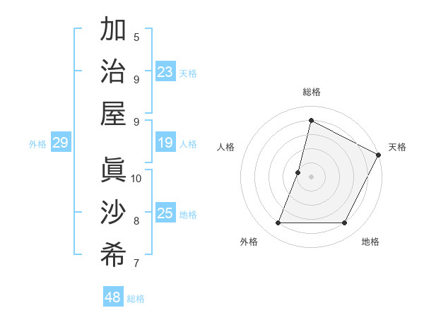 加治屋 眞沙希さんを姓名の画数から五運を鑑定
