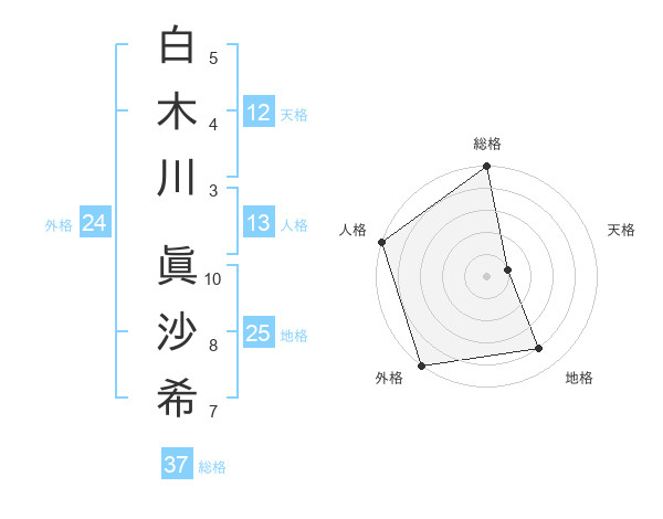 白木川 眞沙希さんを姓名の画数から五運を鑑定