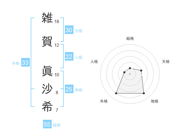 雑賀 眞沙希さんを姓名の画数から五運を鑑定