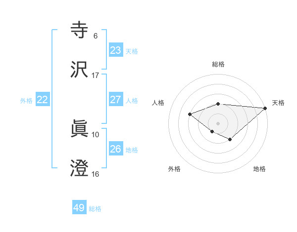 寺沢 眞澄さんの外格は22画の1点!