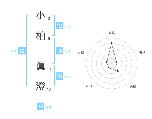 小柏 眞澄さんの総格は38画の4点!