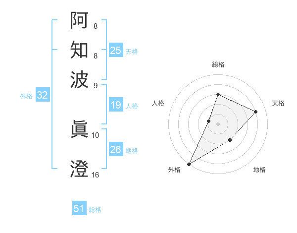 阿知波 眞澄さんの総格は51画の3点!
