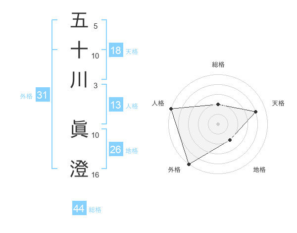 五十川 眞澄さんを姓名の画数から五運を鑑定