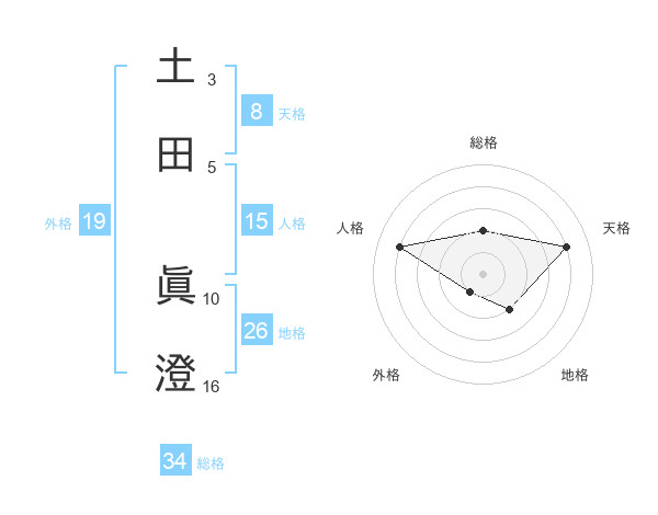 土田 眞澄さんを姓名の画数から五運を鑑定