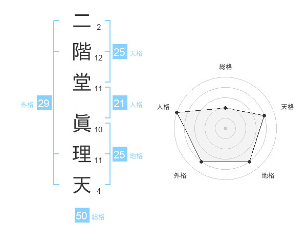二階堂 眞理天さんを姓名の画数から五運を鑑定