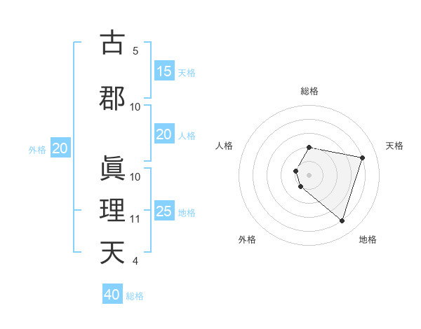 古郡 眞理天さんの総格は40画の2点!