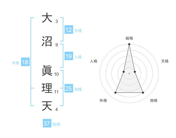 大沼 眞理天さんを姓名の画数から五運を鑑定