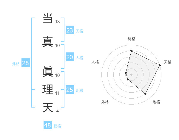 当真 眞理天さんを姓名の画数から五運を鑑定