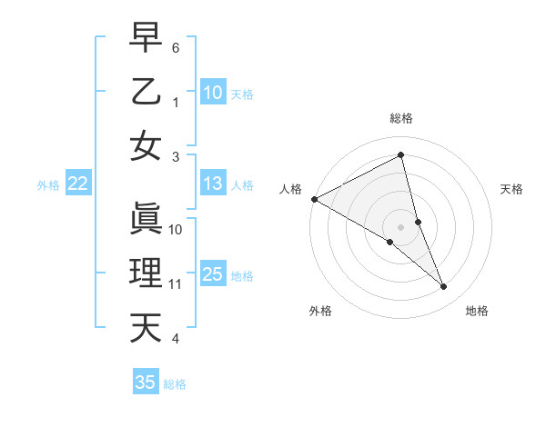 早乙女 眞理天さんの総格は35画の4点!