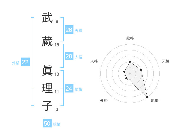 武蔵 眞理子さんの天格は26画の2点!