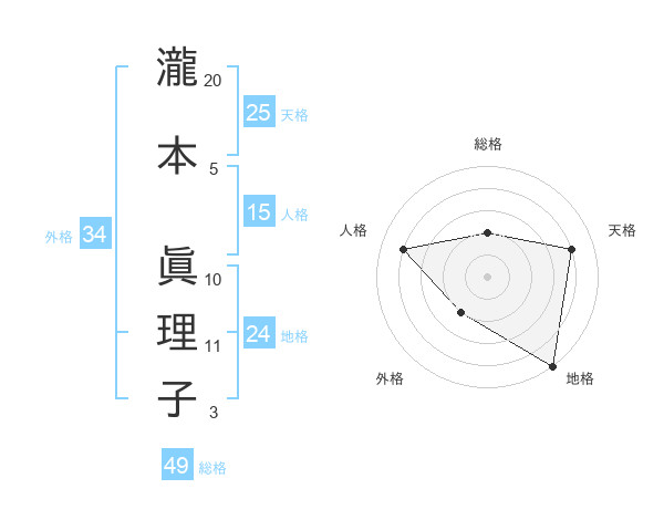 瀧本 眞理子さんを姓名の画数から五運を鑑定