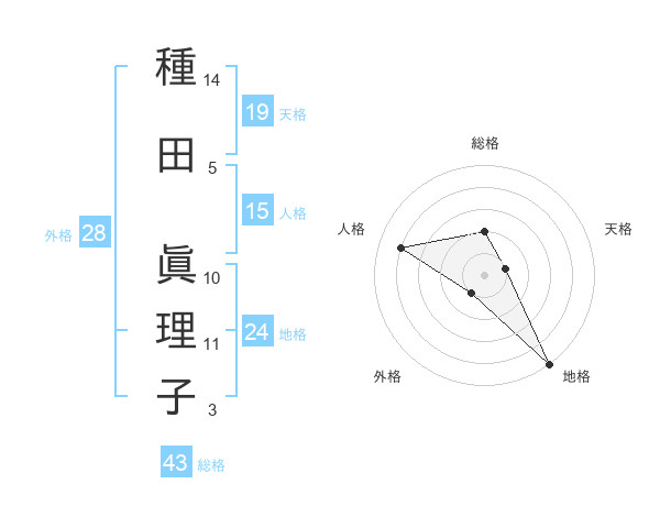 種田 眞理子さんの天格は19画の1点!