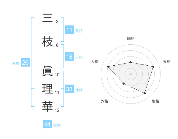 三枝 眞理華さんの天格は11画の4点!