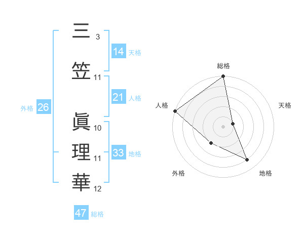 三笠 眞理華さんを姓名の画数から五運を鑑定