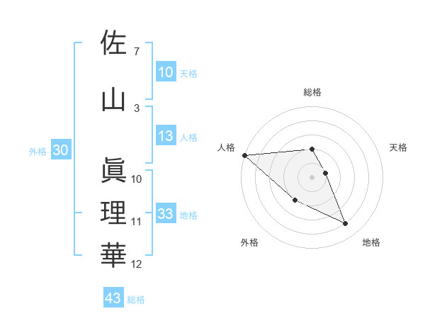 佐山 眞理華さんを姓名の画数から五運を鑑定