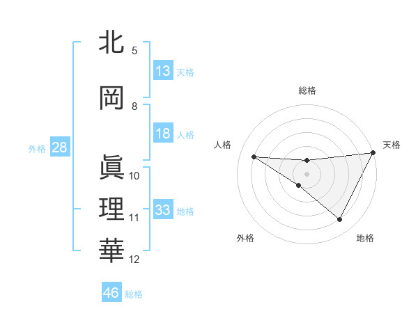 北岡 眞理華さんを姓名の画数から五運を鑑定