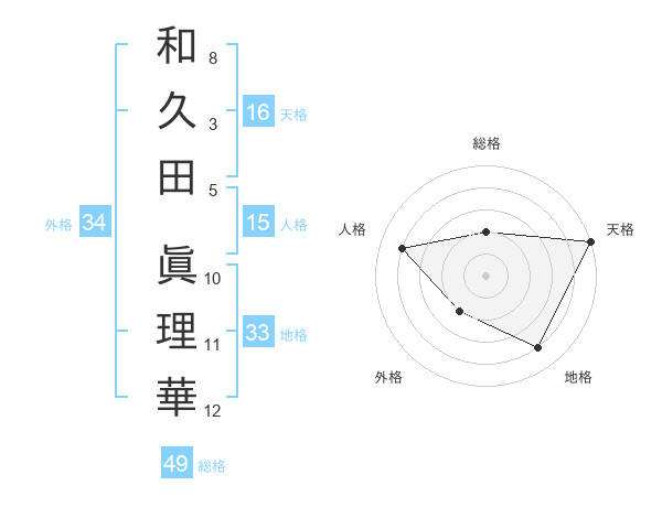 和久田 眞理華さんを姓名の画数から五運を鑑定