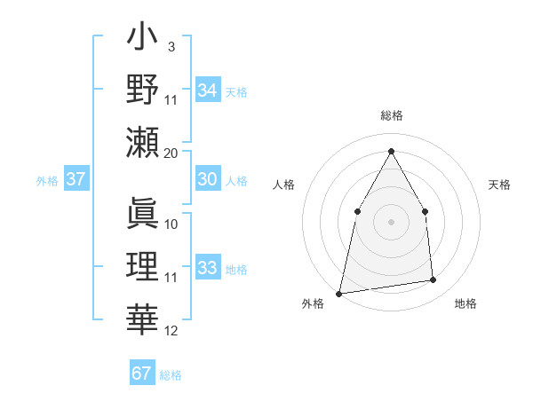 小野瀬 眞理華さんの天格は34画の2点!