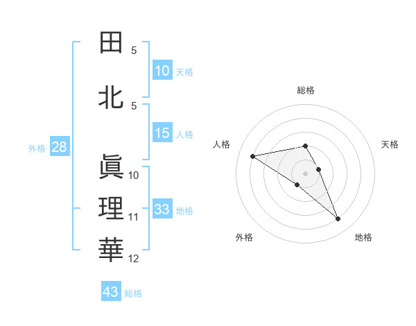 田北 眞理華さんを姓名の画数から五運を鑑定