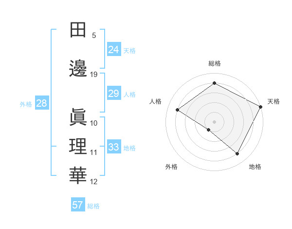 田邊 眞理華さんを姓名の画数から五運を鑑定