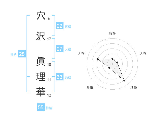穴沢 眞理華さんの天格は22画の1点!