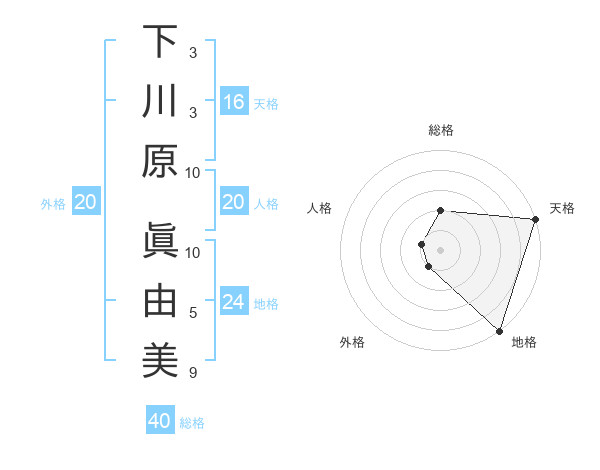 下川原 眞由美さんの天格は16画の5点!