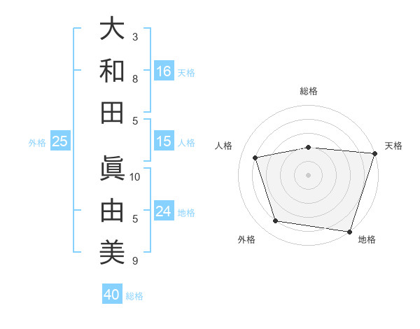 大和田 眞由美さんの天格は16画の5点!