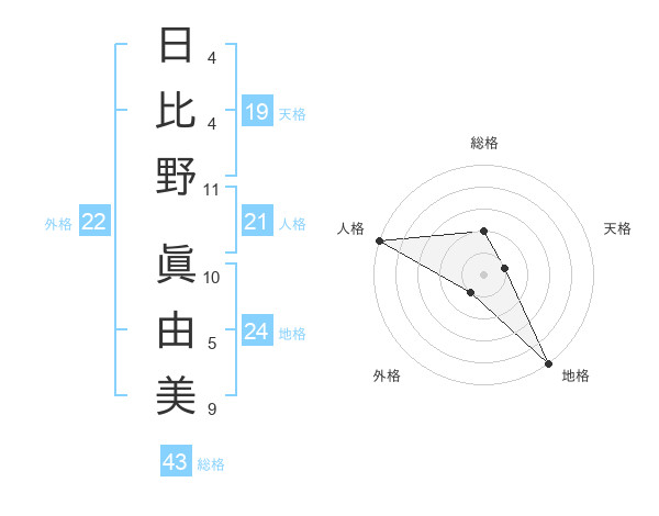 日比野 眞由美さんを姓名の画数から五運を鑑定