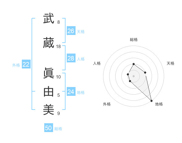 武蔵 眞由美さんを姓名の画数から五運を鑑定