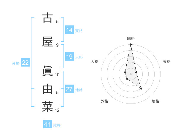 古屋 眞由菜さんの総格は41画の5点!