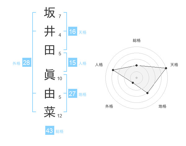 坂井田 眞由菜さんの天格は16画の5点!