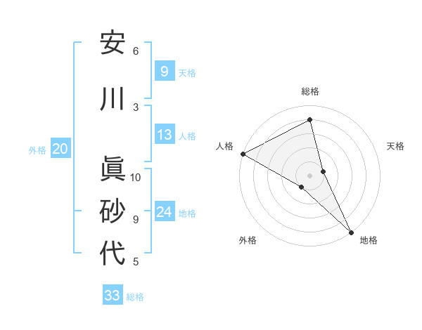安川 眞砂代さんを姓名の画数から五運を鑑定