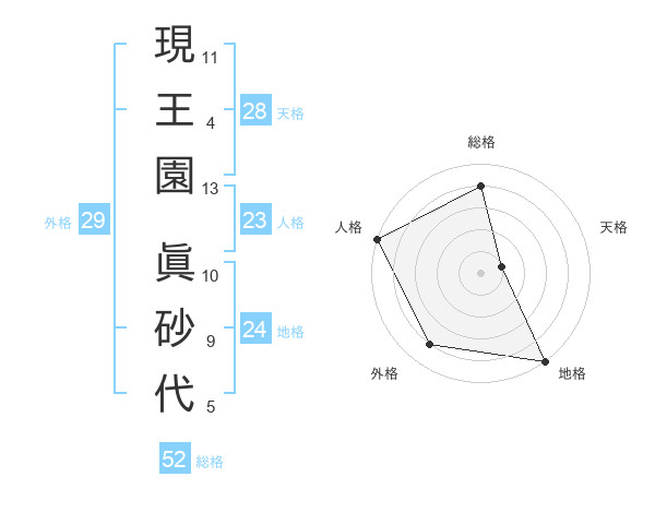 現王園 眞砂代さんを姓名の画数から五運を鑑定