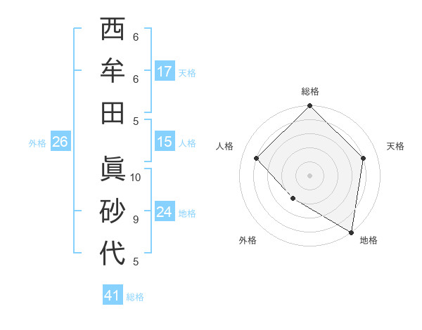 西牟田 眞砂代さんを姓名の画数から五運を鑑定
