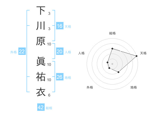 下川原 眞祐衣さんの天格は16画の5点!