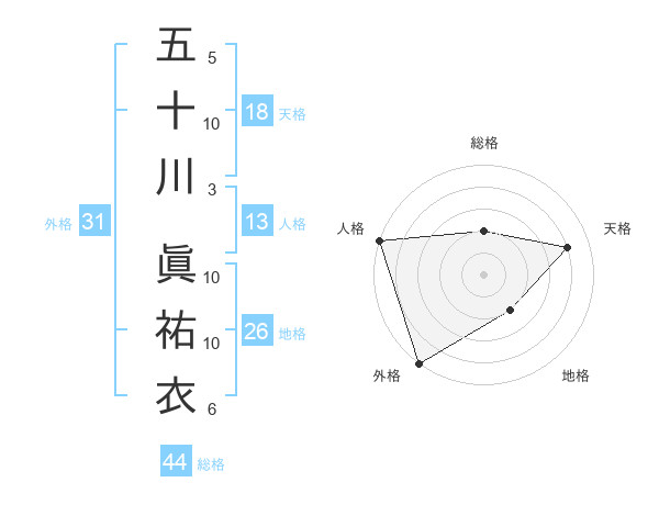 五十川 眞祐衣さんの外格は31画の5点!