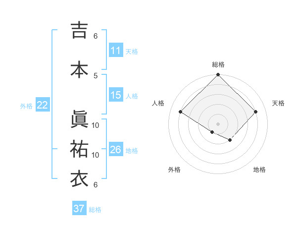 吉本 眞祐衣さんの総格は37画の5点!