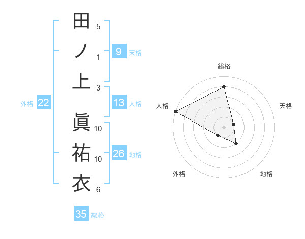 田ノ上 眞祐衣さんの総格は35画の4点!