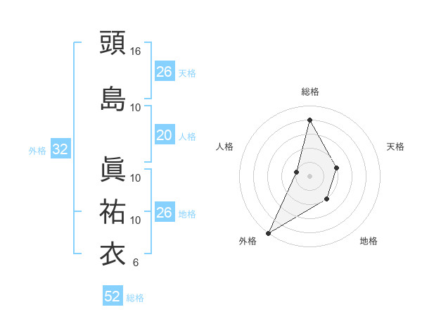 頭島 眞祐衣さんの総格は52画の4点!