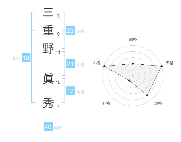 三重野 眞秀さんを姓名の画数から五運を鑑定