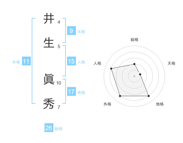 井生 眞秀さんの地格は17画の4点!