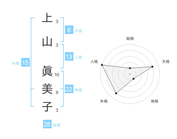上山 眞美子さんを姓名の画数から五運を鑑定