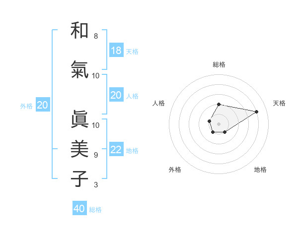 和氣 眞美子さんの外格は20画の1点!