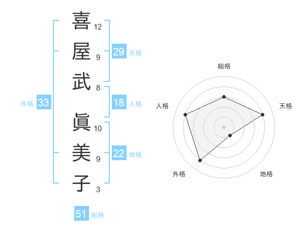 喜屋武 眞美子さんを姓名の画数から五運を鑑定