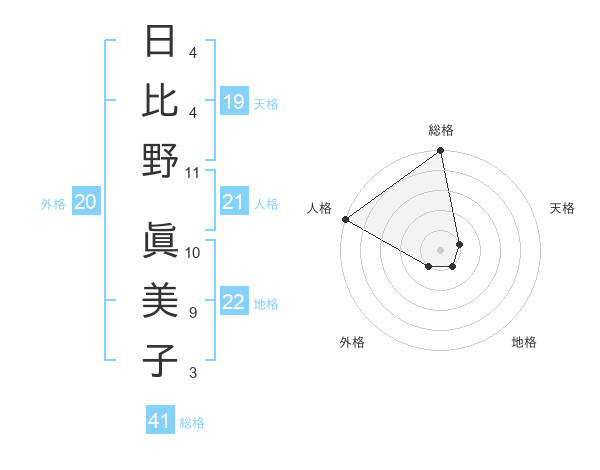日比野 眞美子さんを姓名の画数から五運を鑑定
