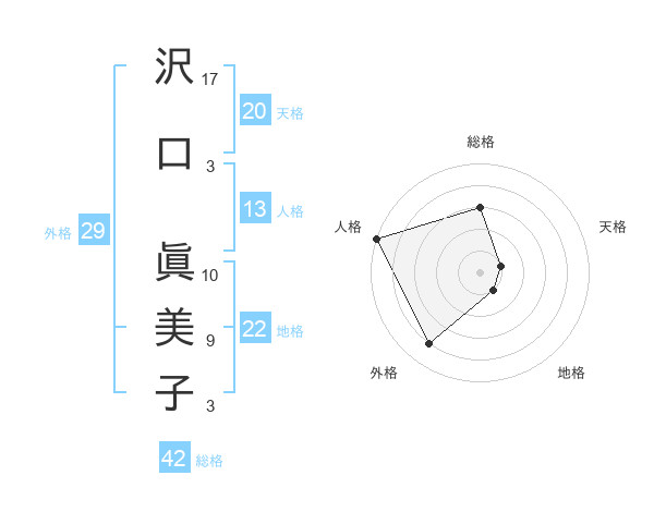 沢口 眞美子さんを姓名の画数から五運を鑑定