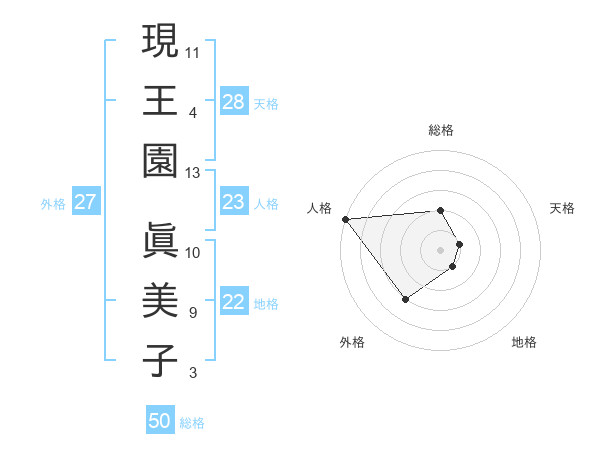現王園 眞美子さんを姓名の画数から五運を鑑定