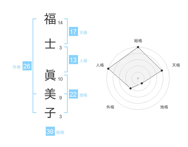 福士 眞美子さんの総格は39画の5点
