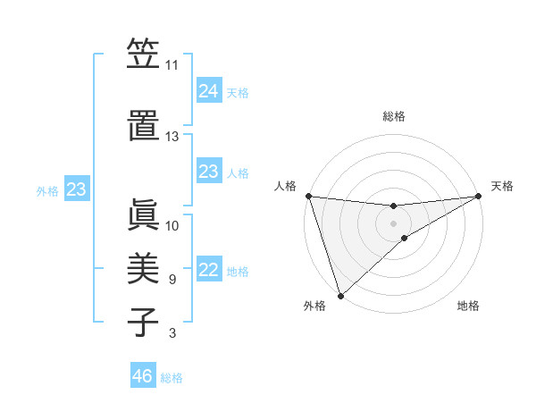 笠置 眞美子さんを姓名の画数から五運を鑑定