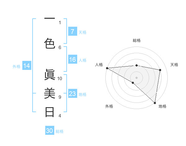 一色 眞美日さんの総格は30画の2点